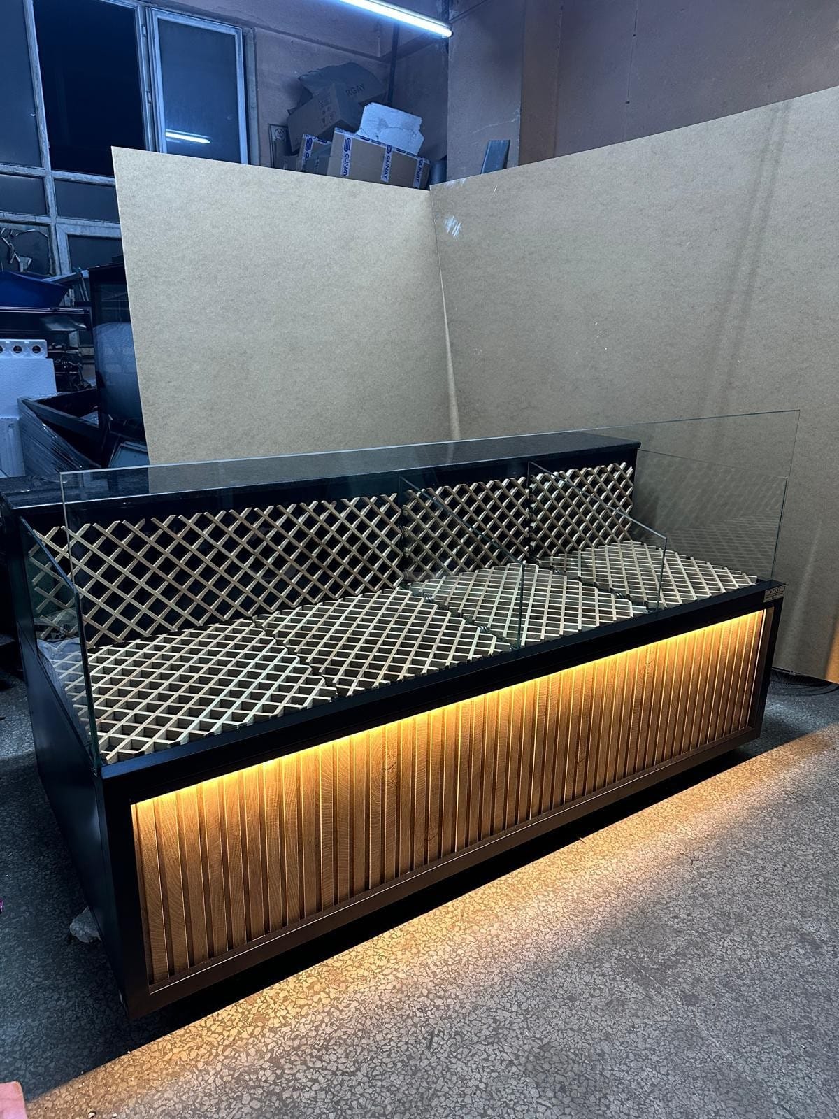 Tantuni Tezgahı Yüksek Camlı Siyah Kırmızı Dekorlu