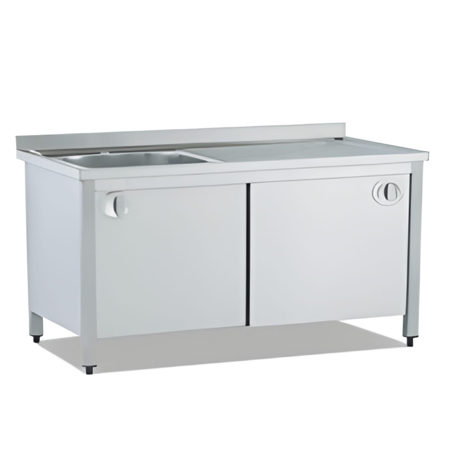 Paslanmaz Evyeli Sürgü Kapaklı Kapalı Çalışma Tezgahı