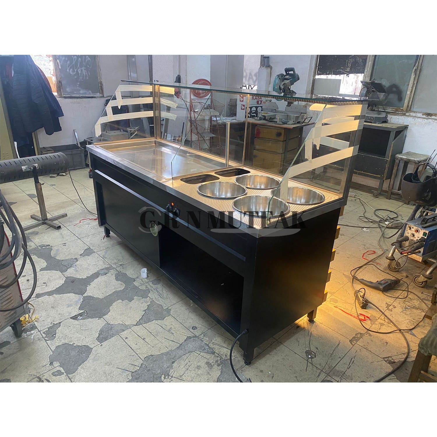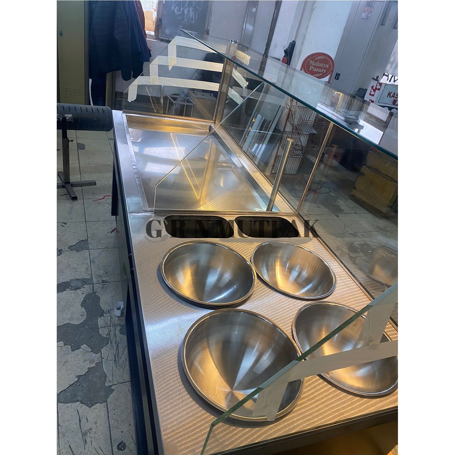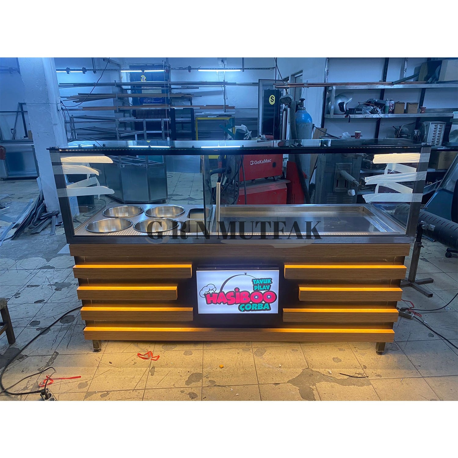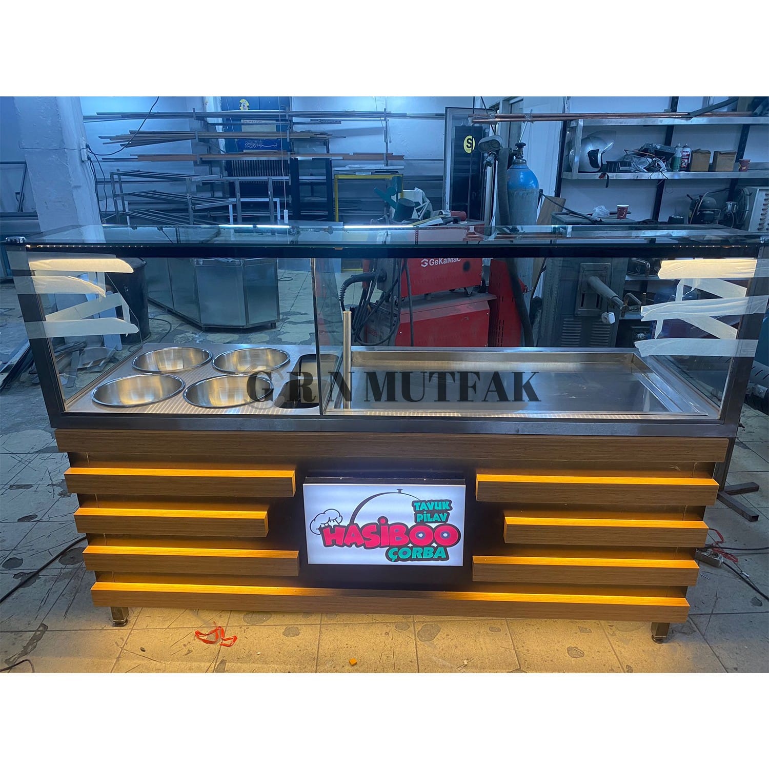 Pilav Tezgahı 4 Çorbalıklı Tabelalı Ahşap Desenli